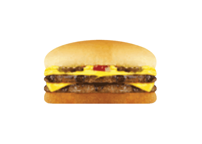 2 Steaks 45gr, cornichons, double cheddar fondu, sauce ketchup et moutarde américaine.
